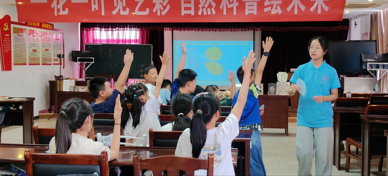 一花一叶总关情,一草一木皆是诗。实践团成员依据生物科学专业特色,带领社区的同学们“绘制”红色叶脉,传承大国情怀。