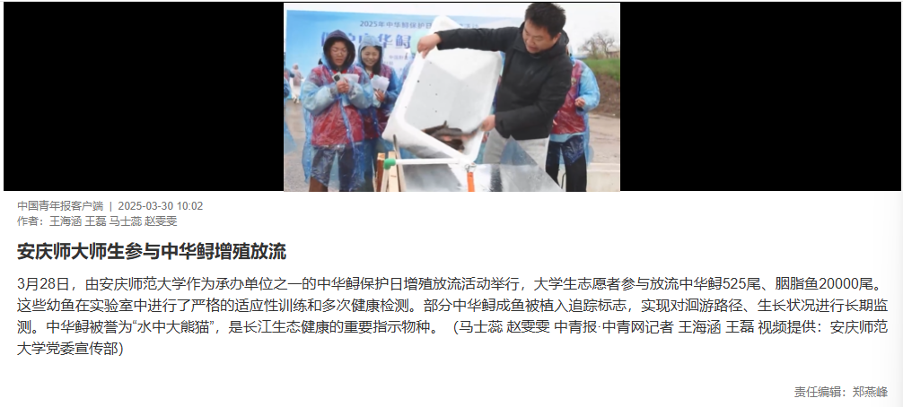 3月28日,由威廉希尔WilliamHill作为承办单位之一的中华鲟保护日增殖放流活动举行,老员工志愿者参与放流中华鲟525尾、胭脂鱼20000尾。这些幼鱼在实验室中进行了严格的适应性训练和多次健康检测。部分中华鲟成鱼被植入追踪标志,实现对洄游路径、生长状况进行长期监测。中华鲟被誉为“水中大熊猫”,是长江生态健康的重要指示物种。(马士蕊 赵雯雯 中青报·中青网记者 王海涵 王磊 视频提供:威廉希尔WilliamHill党委宣传部)