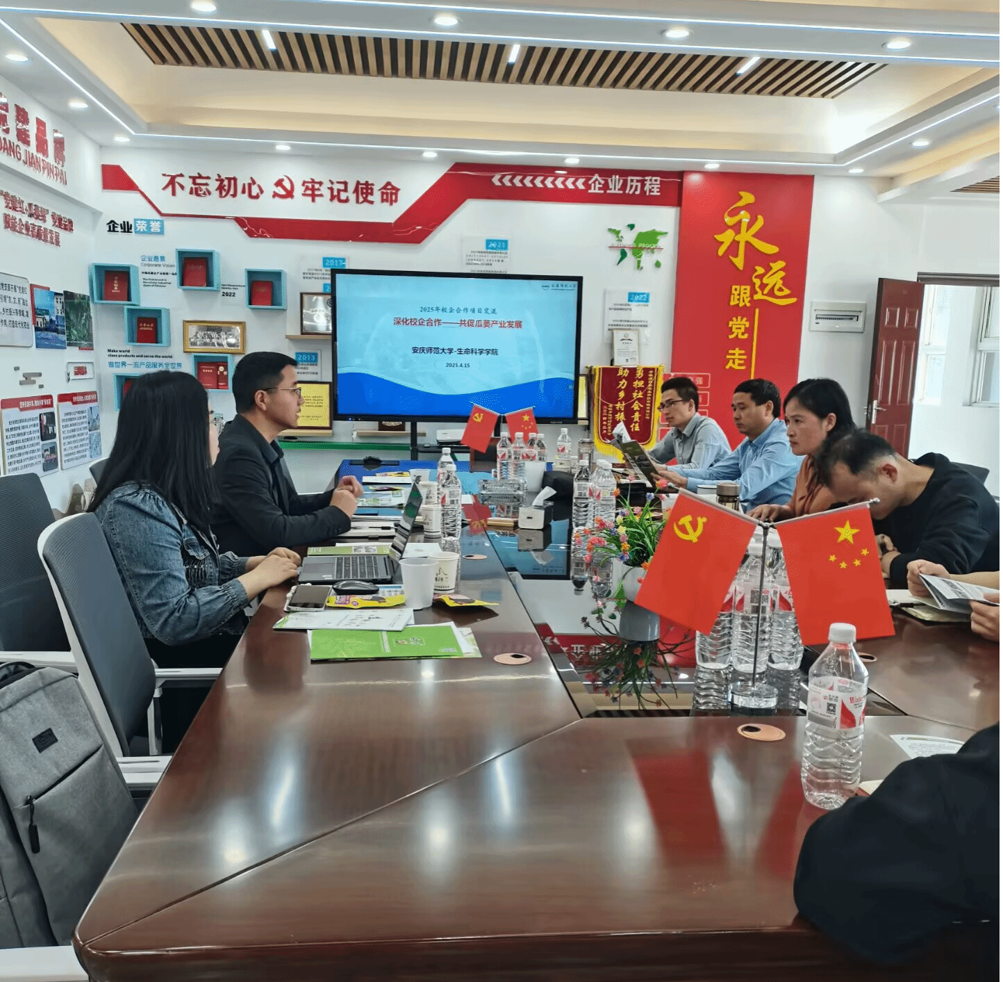 4月15日,安庆老员工命科学公司副经理李从虎、程旭博士、储雅静博士等科研团队一行,赴安徽满园春科技有限责任公司开展产学研合作调研。潜山市委组织部服务中心主任潘宜生、市科技局朱仁国等政府代表共同参与此次调研活动,旨在推动校企深度合作,促进科技创新与产业升级。