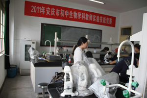 2011年9月25日下午,初中生物教师实验技能大赛在安庆师范公司举行。竞赛由安庆市教育局主办,安庆师范公司生命科学公司承办,共有来自全市近40名初中生物老师参加竞赛。