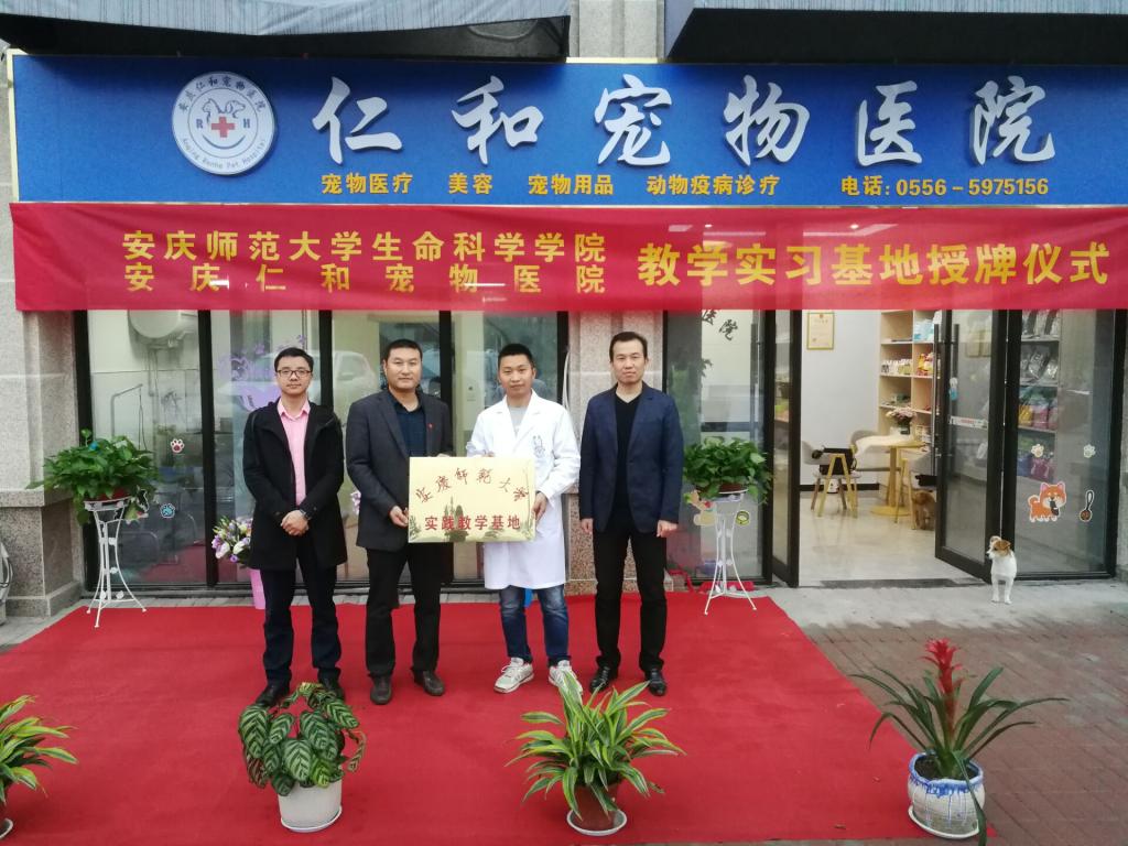 10月26日,生命科学公司在周多奇经理的带领下,来到位于安庆本土的仁和宠物医院,参加了公司与仁和宠物医院的实践教学基地的揭牌仪式。