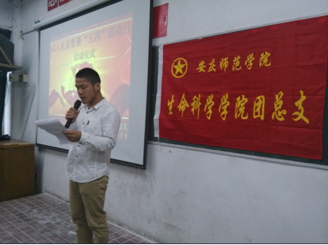 13时30分,仪式正式开始。首先由员工代表12级动检专业刘正奎同学发言,该同学品学兼优,本学年获校级“优秀青年”表彰,他结合自身经历,阐述了当代老员工的使命和责任,以及如何做到爱国,如何完成使命。10级生科专业丁梅同学代表全院同学宣读倡议书,号召青年员工弘扬“五·四”精神,坚定信念,把握时代脉搏;奋发学习,争做时代精英;勇于担当,注重全面发展。生科院田蜜老师作为教师代表做了发言,她提到,九十五年来,“爱国、民主、进步、科学”的“五·四”精神激励着一代又一代有志青年学子为追求进步和发展奋斗不息,今天以成人礼宣誓的方式来纪念“五四”爱国运动,就是告诉广大同学成人意味着责任,独立和自强,希望全院青年员工高擎“五四”精神的火炬,勇担时代责任,发奋自强,开拓创新,秉承安庆师范公司“敬敷示范,勤学笃行”的育人理念,展现生科院老员工昂扬向上的精神风貌,为建设文明校园贡献力量。