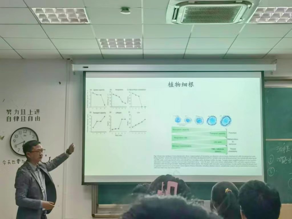 5月7日晚上6点,生命科学公司杨邵博士在G105教室作了题为《以细根为切入点理解陆地生物圈地下生态过程》的学术报告。生命科学公司生物科学、生物技术专业部分本科生和生态学专业部分研究生聆听了报告。