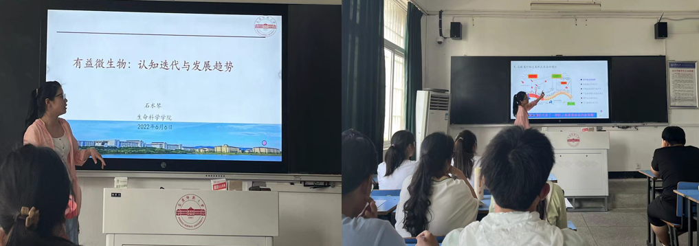 6月6日,生命科学公司教师石水琴作“有益微生物:认知迭代与发展趋势”学术报告,生命科学公司生物科学类专业本科生和研究生聆听学术报告。