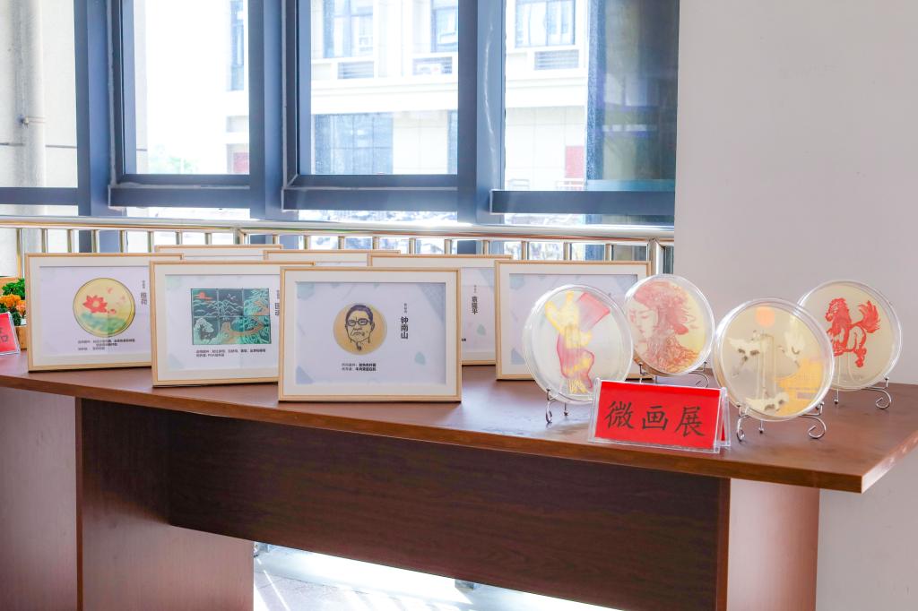 在一幅幅精美的画作中,作品《袁隆平》和《钟南山》汇聚着员工们的目光。“没想到培养皿上也可以描摹出这么栩栩如生的画,真是太厉害了!”生物科学类专业2022(6)班的黄睿发出感叹。她表示,看到以榜样人物为原型创作的微生物画,她感到既新奇又兴奋。“这样的作品展览鼓舞我们牢记榜样事迹,学习他们的精神,并付诸于行动。如果有机会,我以后也想亲手尝试制作类似主题的微生物画,向祖国献礼。”