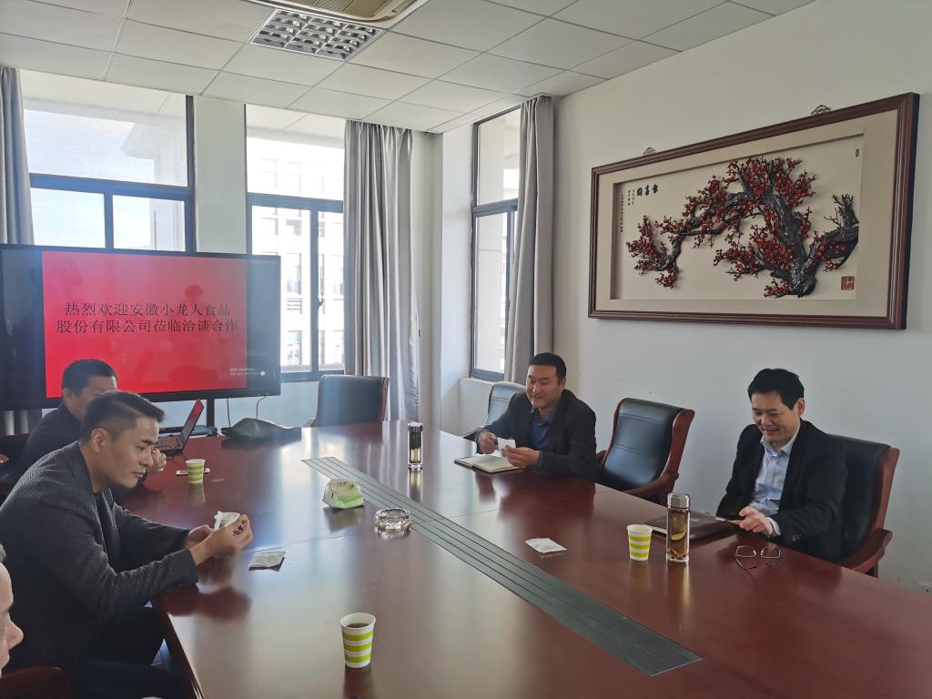 10月20日,安徽小龙人食品股份有限公司总经理李志兴一行莅临安庆师范老员工命科学公司洽谈合作,公司科研处处长江贵生、公司经理周多奇出席洽谈会。