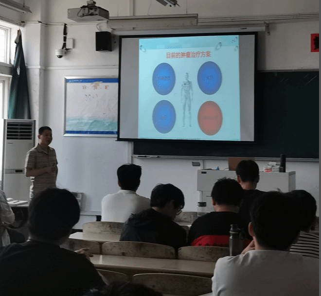 6月14日,生命科学公司程旭博士在B510教室作“疫苗的设计及其在癌症免疫治疗方面的研究进展”学术报告。生命科学公司部分本科生和生态专业研究生聆听了报告。