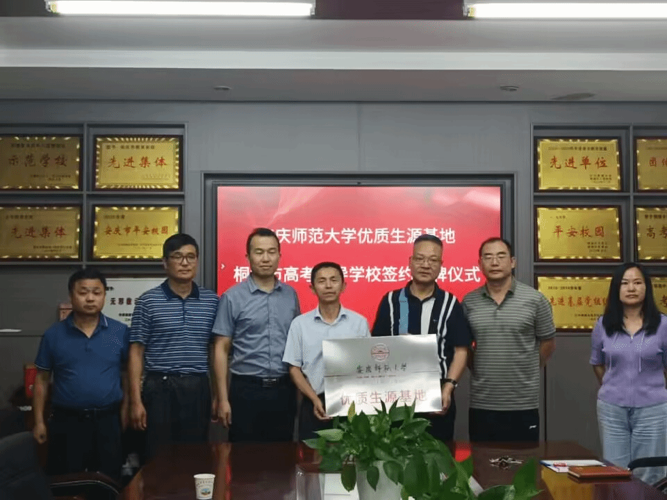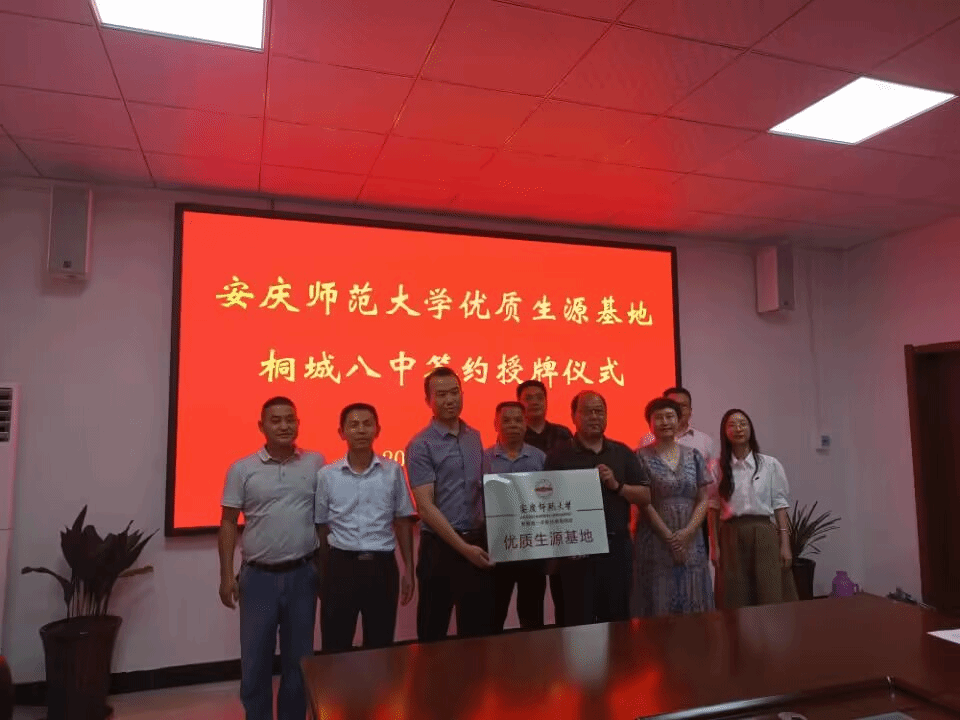 安庆师范老员工命科学公司一行代表公司分别与铜陵市第三中学、望江中学、桐城市第八中学、桐城市高考辅导公司签订了威廉希尔WilliamHill优质生源基地合作协议书并授牌。