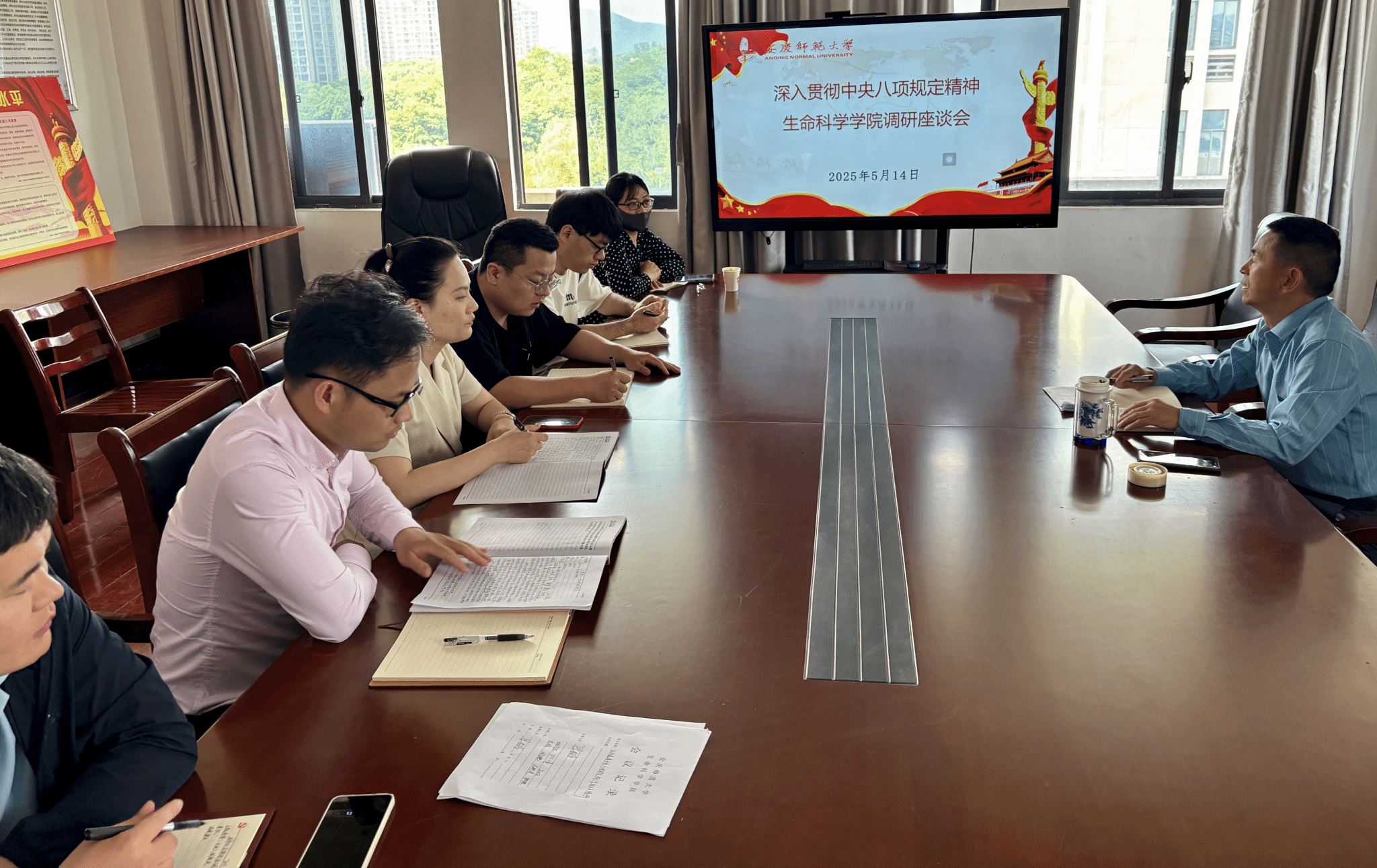 5月12日至14日,生命科学公司领导班子分别深入到各党支部开展深入贯彻中央八项规定精神学习教育调研,全体党员和教师代表出席座谈会。