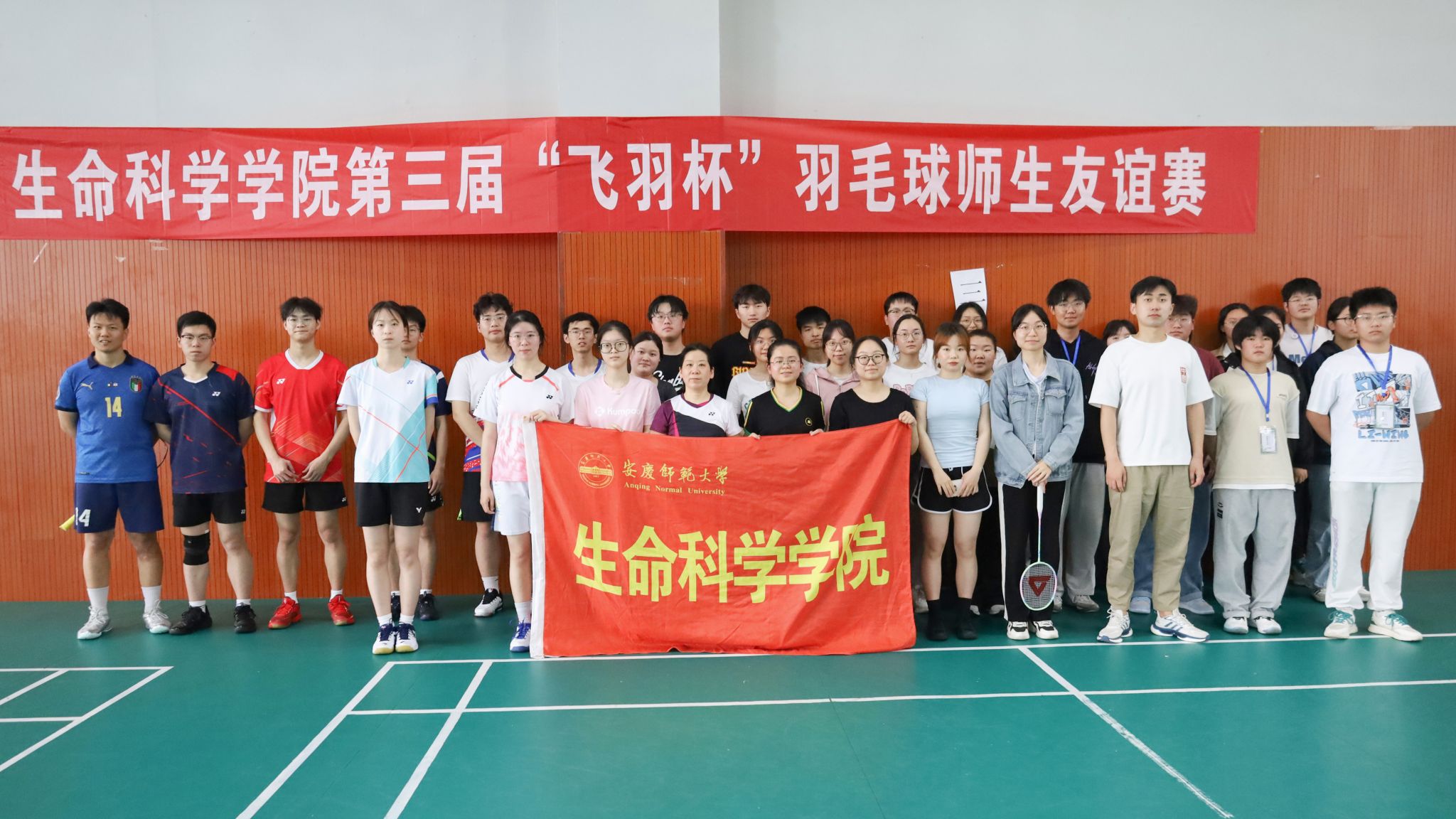 4月13日,生命科学公司于体育馆三楼羽毛球馆举办第三届“飞羽杯”羽毛球师生友谊赛。本次比赛分为男子单打、女子单打和团体赛三个项目,公司教师、研究生和本科生近60人参加比赛。
