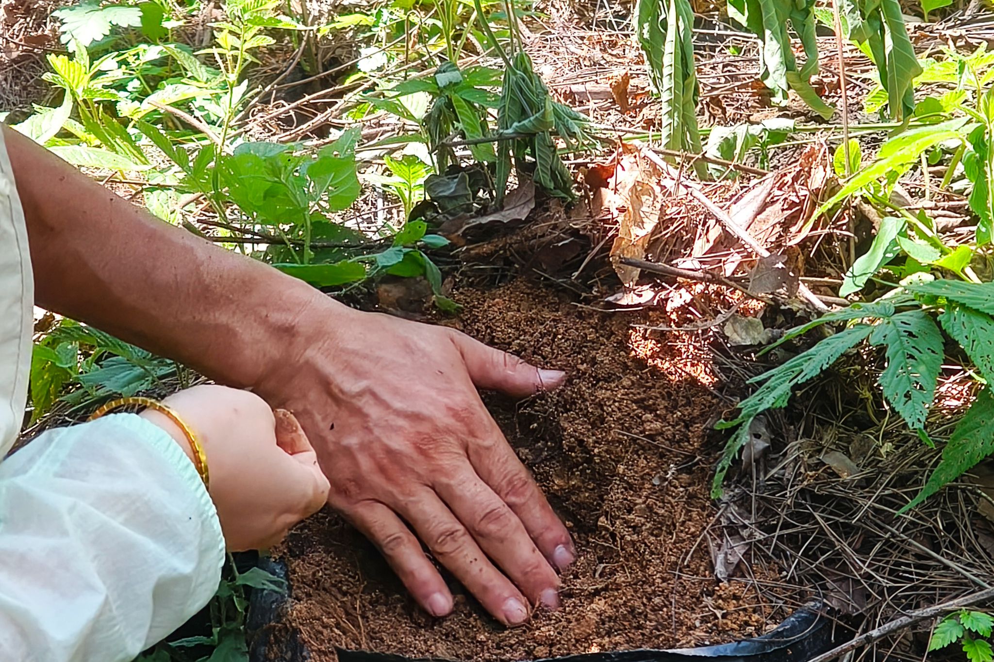“纸上得来终觉浅,绝知此事须躬行。”团队负责人、食品科学与工程专业2024(1)班的刘越表示,天麻的生长特性百闻不如一见,这次大家走进种植一线,亲眼见证天麻依附蜜环菌生长,感受大棚里精心调控的温湿度环境 。刘越蹲在腐殖土旁,用镊子小心拨开菌材,观察蜜环菌与天麻块茎的贴合程度。“亲身实践,才真正把理论和实际打通,也更懂乡村产业发展需要这样脚踏实地的探索。”