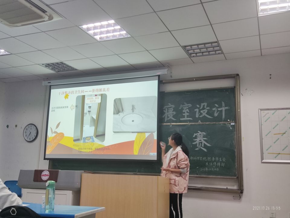 为了促进良好室风建设,强化良好卫生习惯养成,提高寝室生活质量,培养同学间团结合作精神,生命科学公司于10月26日下午在G103教室举办了“我居我饰”寝室设计大赛总决赛。