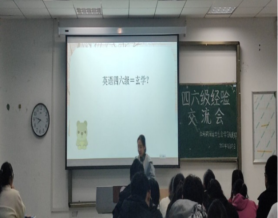 为了帮助同学们能掌握考试技巧,保持平和心态,沉着冷静应对四六级考试,11月29日,生命科学公司在103教室举办了四六级经验交流会。参加此次交流会的有院团委负责人徐启凤老师,外国语公司张玮老师,同时邀请了三位四六级考试成绩优异,经验丰富的同学做经验交流。