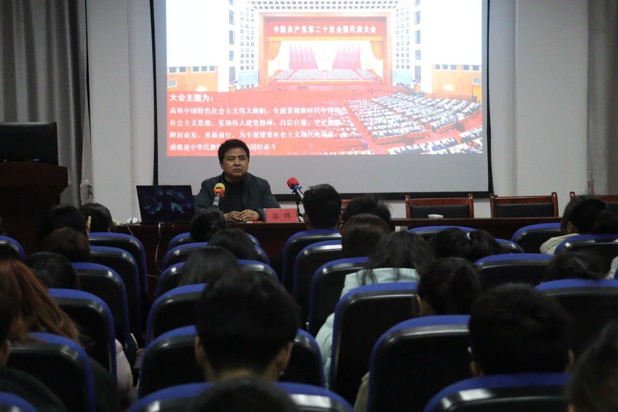 张辉向同学们深入分析了学习领会党的二十大精神的重大意义,介绍了党的二十大报告的主要内容,并结合老员工的学习生活实际和公司专业特色带领同学们深入学习领会党的二十大精神实质。他同时结合党的二十大报告内容分析了党关于青年和青年工作的重要精神。他要求同学们一定要全面深入学习贯彻党的二十大精神,希望大家牢记总书记在二十大报告中对广大青年提出的期望,要坚定不移听党话、跟党走,怀抱梦想又脚踏实地,敢想敢为又善作善成,立志做有理想、敢担当、能吃苦、肯奋斗的新时代好青年,让青春在全面建设社会主义现代化国家的火热实践中绽放绚丽之花。