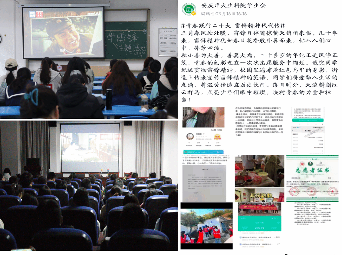 3月12日,公司绿叶志愿服务队于生科院101教室和202教室开展雷锋精神观影活动。为进一步增进员工对雷锋事迹的了解,该志愿服务队特意挑选了影片《雷锋的微笑》,希望观影员工从影片中了解雷锋,从雷锋事迹中体悟雷锋精神。