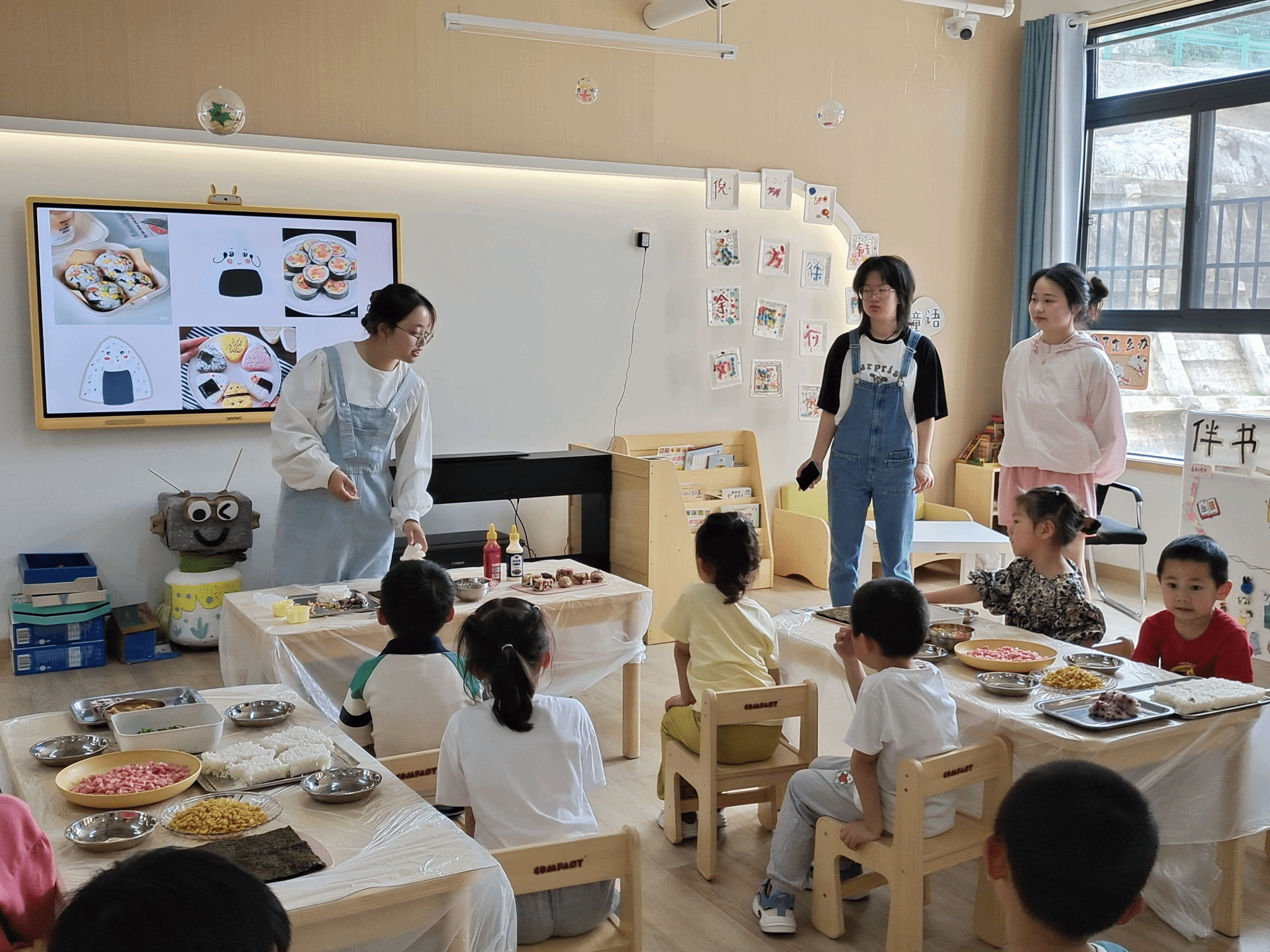 五角星、米奇、小猪佩奇……在小老师们的带领下,小朋友们发挥创意和想象,制作出各式各样的饭团。他们还将成品饭团送给自己的好朋友、老师及园长,一同分享劳动成果。