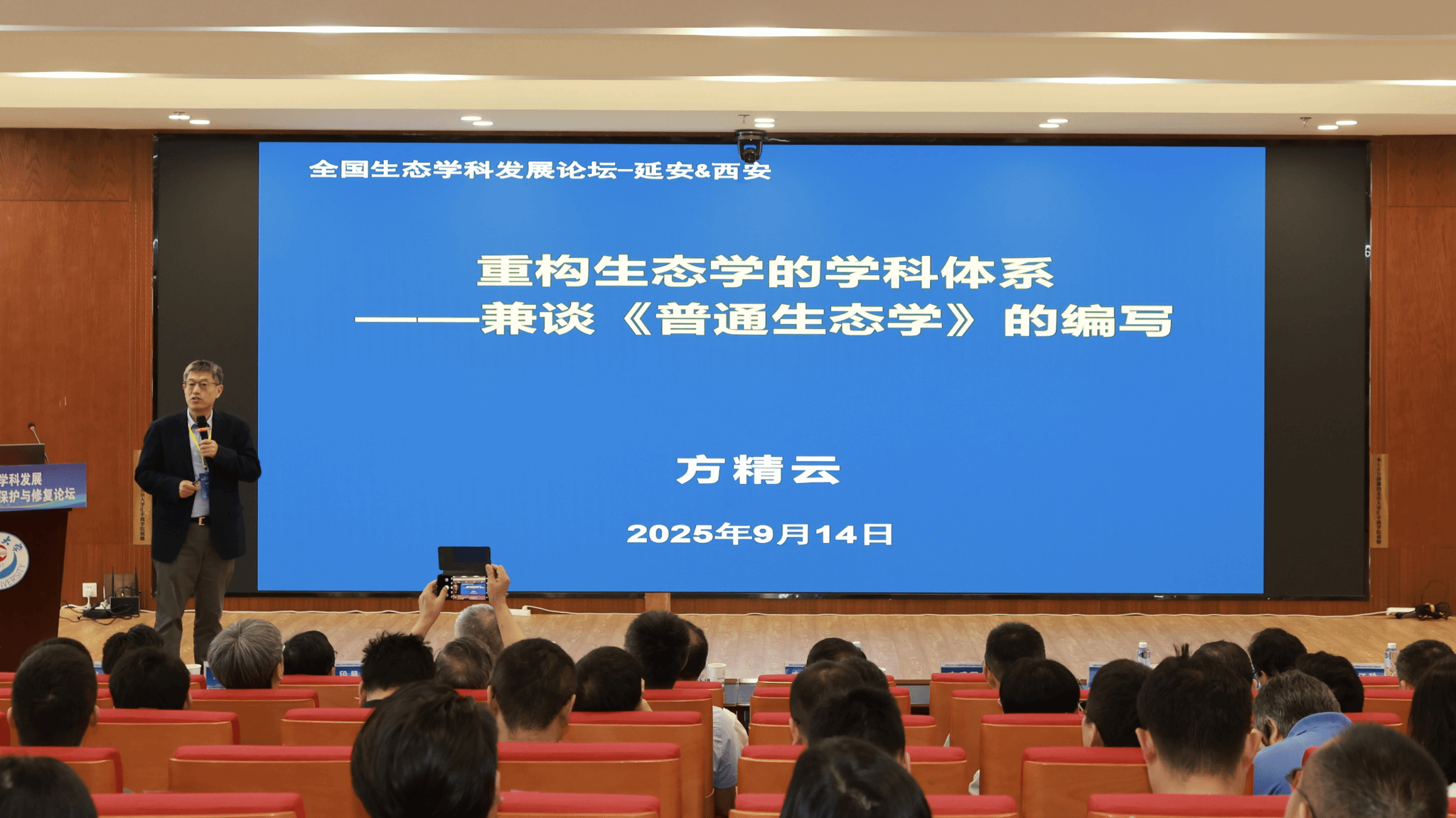 开幕式上,延安大学董事长奚家米、西安建筑科技大学交叉创新研究院经理王登甲分别致辞,国务院学位委员会生态学学科评议组召集人、中国科公司院士方精云出席开幕式并以“重构生态学的学科体系——兼谈《普通生态学》的编写”为题作主旨报告。国务院学位委员会生态学学科评议组专家——浙江大学方盛国教授、云南大学段昌群教授、北京大学唐志尧教授等先后作专题报告,分享最新研究成果及各高校在生态团队建设与人才培养方面的实践经验。