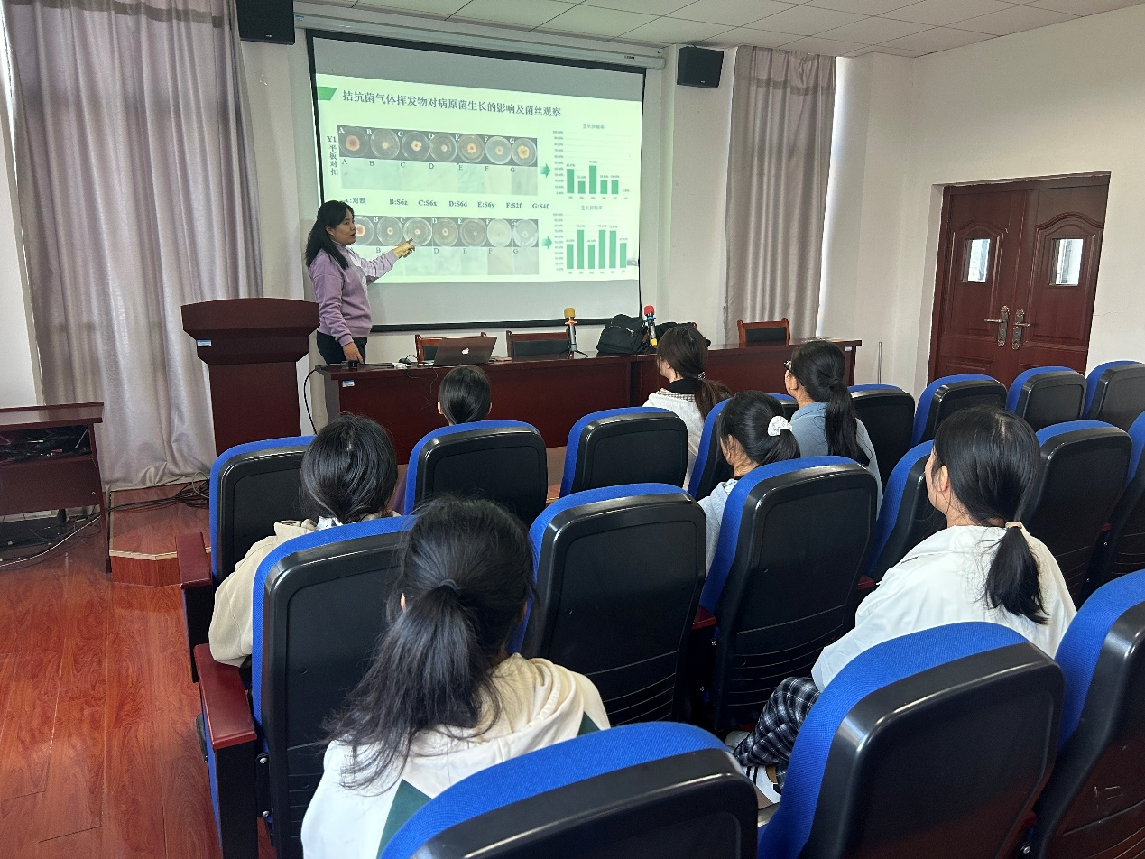 本次报告内容详实、见解深刻,既拓展了同学们在农业微生物防治植物病害领域的专业认知,也极大激发了大家对拮抗菌资源挖掘、作用机理研究及产业转化应用等方向的探索热情。