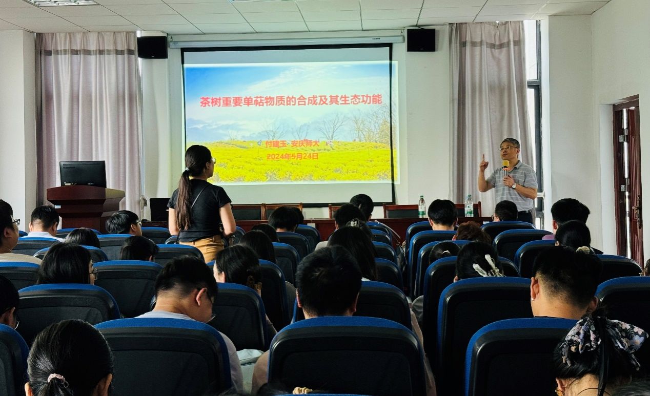 5月24日,中国农业科公司茶叶研究所付建玉研究员应邀来公司交流指导,并作题为“茶树重要单萜物质的合成及其生态功能”的学术报告。报告由生命科学公司副经理穆丹教授主持,公司部分老师、研究生及本科生聆听了报告。