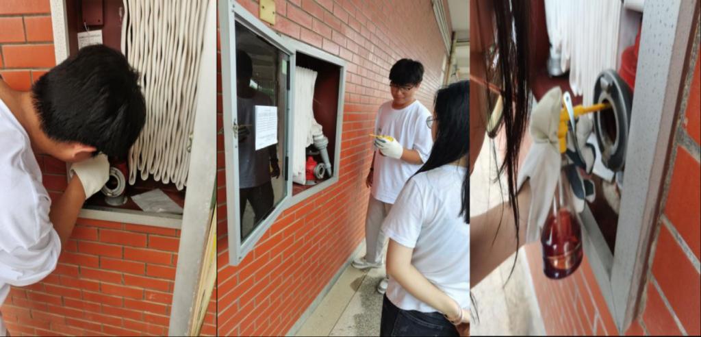 员工在对图书馆消防栓进行整理