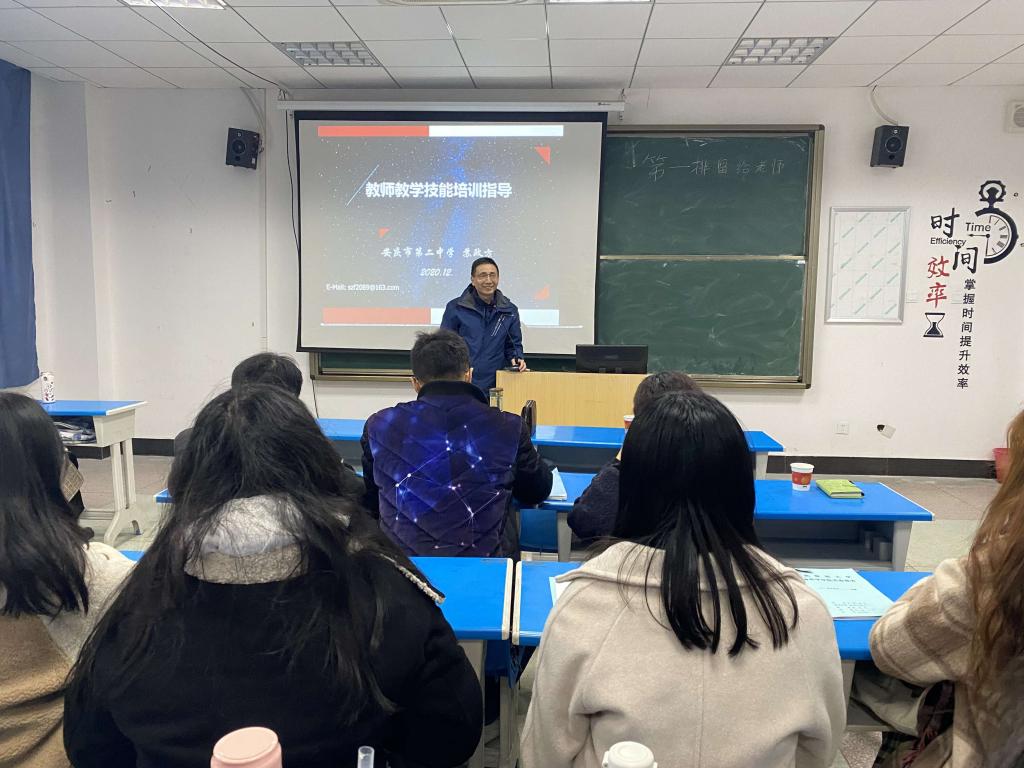12月2日下午2:00,安庆二中正高级生物教师苏政方在龙山校区G楼105教室做了题为“教学技能培训指导”的学术讲座。生命科学公司2020级学科教学(生物)研究生,2019级、2018级生物科学专业本科生和部分教师聆听了报告。报告由生命科学公司副经理吴彦教授主持。