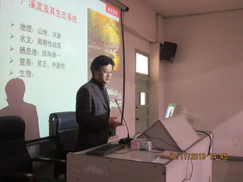 11 月 16 日 下午,安徽师范大学严云志教授应邀在菱湖校区414教室作了“溪流鱼类生态学研究——以皖南山区为例”专题学术讲座。生命科学公司100多名师生聆听了报告,报告会由生命科学公司副经理魏和平博士主持。