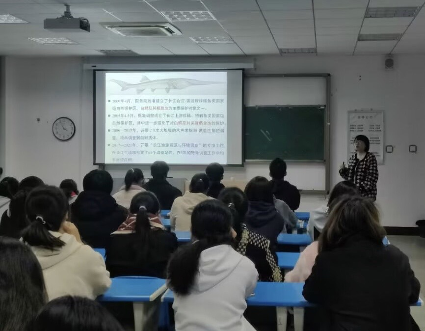 杨晓鸽副教授从“鲟形目鱼类分类地位”、“鲟形目鱼类濒危现状”、“长江流域3种鲟形目鱼类”、“致危因素”以及“保护策略”五个方面做了详细讲解。
